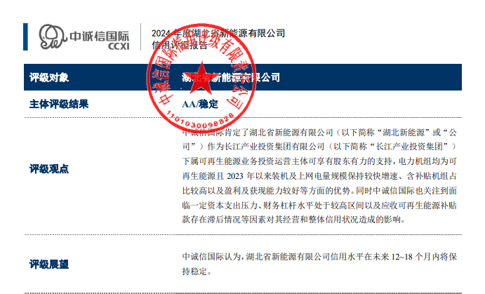 - 湖北日報(bào):湖北新能源獲批“AA”主體信用評級 11-04